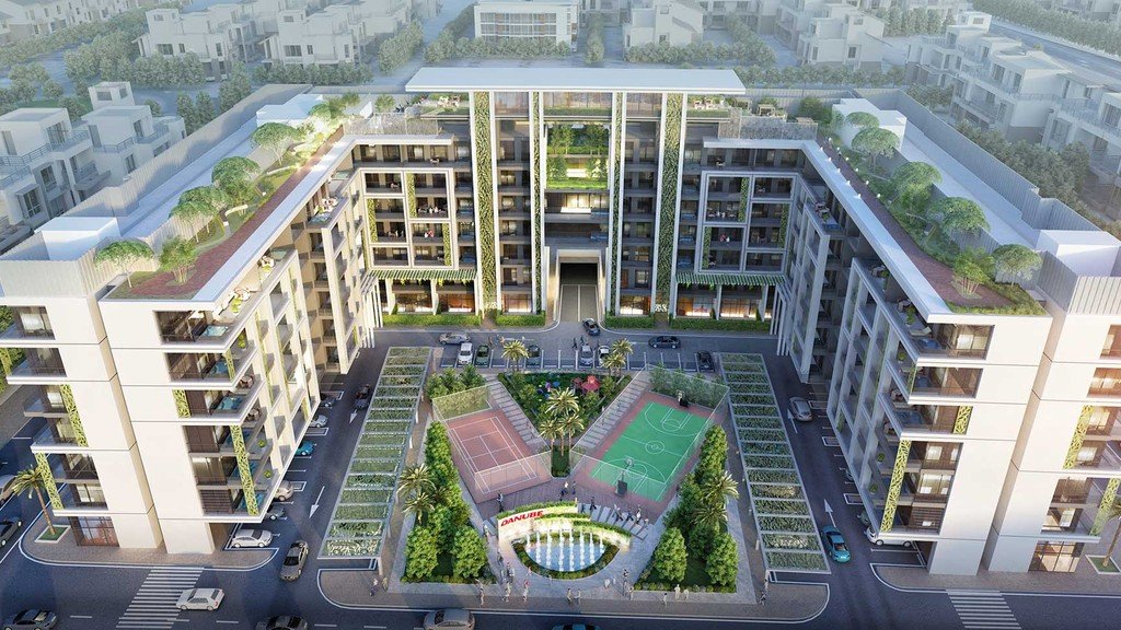 Step inside to discover spacious, light-filled living areas featuring floor-to-ceiling glazing, smart-home technology, fully fitted kitchens, and marble-tiled wet areas. Many units offer private balconies or terraces, encouraging indoor–outdoor living and creating a sense of calm within the bustling city. The architectural intention leans into communal harmony, with soft pastel and garden-tone accents blending organic aesthetics with contemporary comfort .