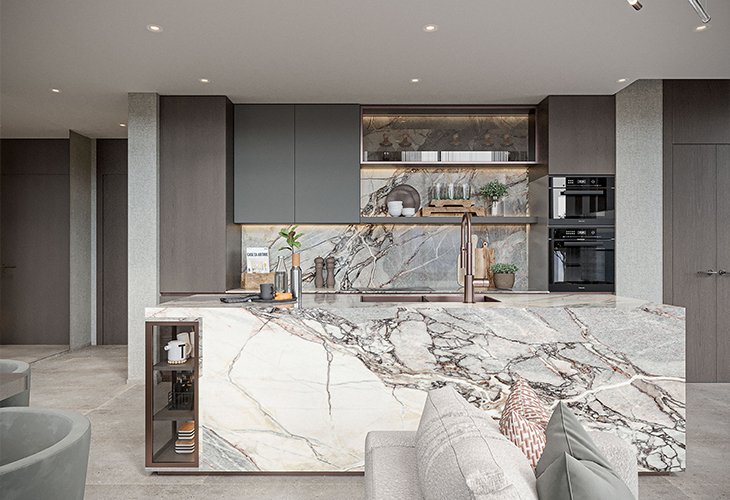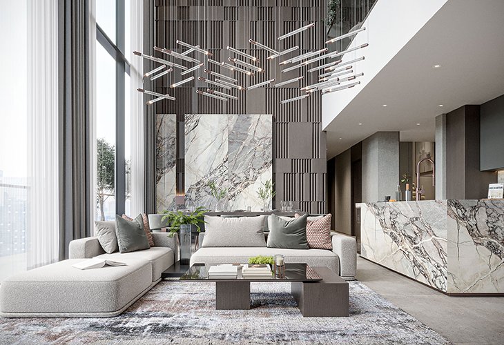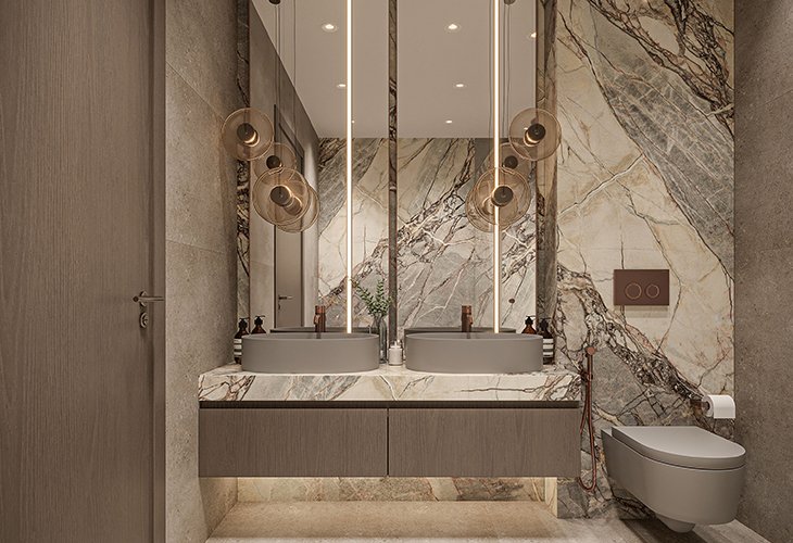 Properties at Iman Sierra at Motor City include studios, 1- and 2-bedroom apartments, some with a study and maid’s room, as well as 4-bedroom duplexes with private pools. The project comprises a total of 593 residences and 5 retail units. Living area sizes range from 417 sqft (39 m²) to 3,894 sqft (362 m²). All apartments feature well-thought-out layouts with panoramic windows, high ceilings and elegant interiors. Premium materials such as ceramics, wood and stone have been used for the finishes. Built-in kitchens, European brand sanitary ware, smart home systems and hidden storage elements create a visually pure and aesthetic space, while also providing 5-star hotel comfort. Apartments at Sierra by Iman are available for sale unfurnished