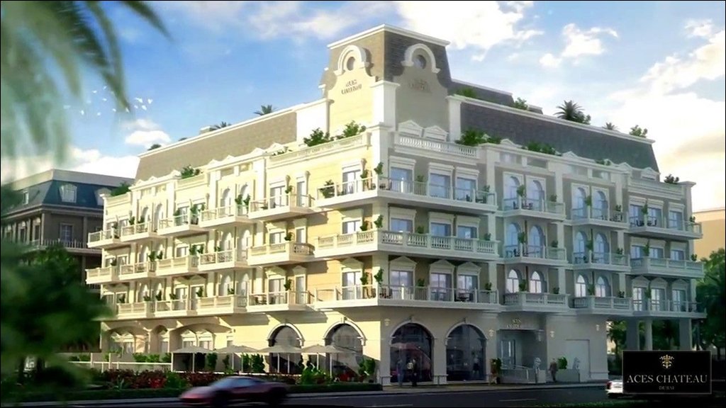 Aces Chateau embodies a French renaissance architectural style, offering a selection of 50 residential units, including studios, one-, two-, and three-bedroom apartments, as well as penthouses. Each unit is designed with spacious interiors, featuring fitted wardrobes, cloakrooms, lounge and dining areas, powder rooms, and private gardens. Penthouses are enhanced with private swimming pools. The building provides amenities such as underground parking, high-speed elevators, central air conditioning, 24-hour security with CCTV surveillance, a rooftop swimming pool, Jacuzzi, landscaped gardens, and retail spaces on the ground floor.