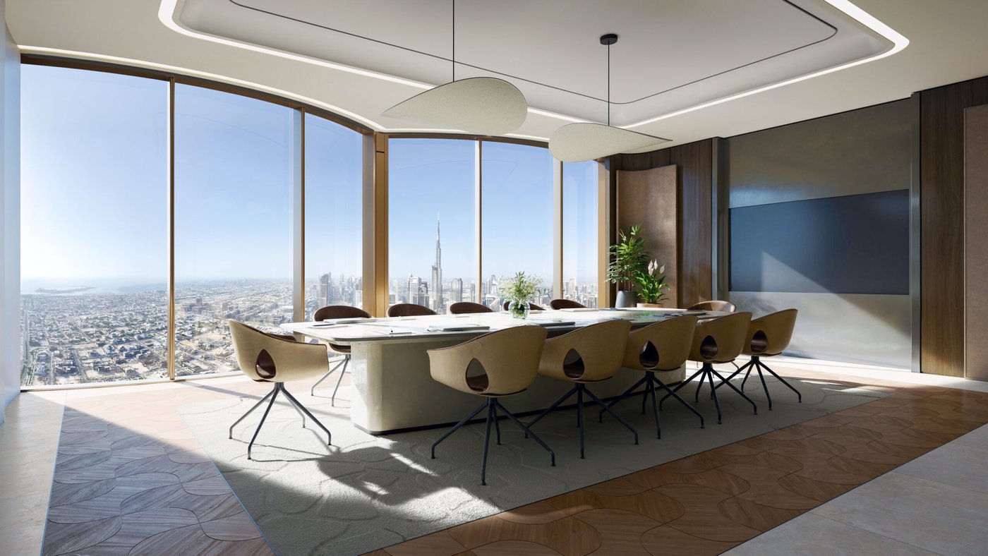 The newest ultra-luxury commercial and mixed-use landmark in Dubai, LUMENA ALTA by Omniyat, rises 380 meters above the city skyline at the entrance to Business Bay. Featuring 91 premium Grade-A office units ranging from 4,966 to 16,937 sq ft, including: Standard Offices – from AED 19 M, Half-Floor Offices, and Full-Floor Offices with request prices. Each workspace is delivered in a shell & core configuration for full customization. In addition to a five-star luxury Sky Hotel, excellent dining options, health centers, and select retail stores, the property provides 723,545 square feet of prime office space spread across 45 floors.
