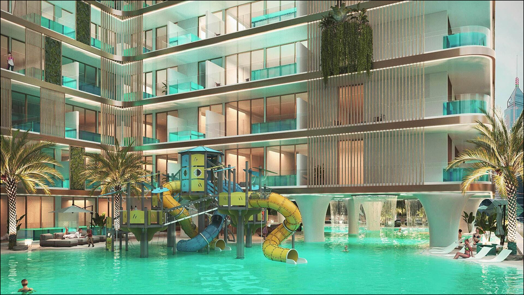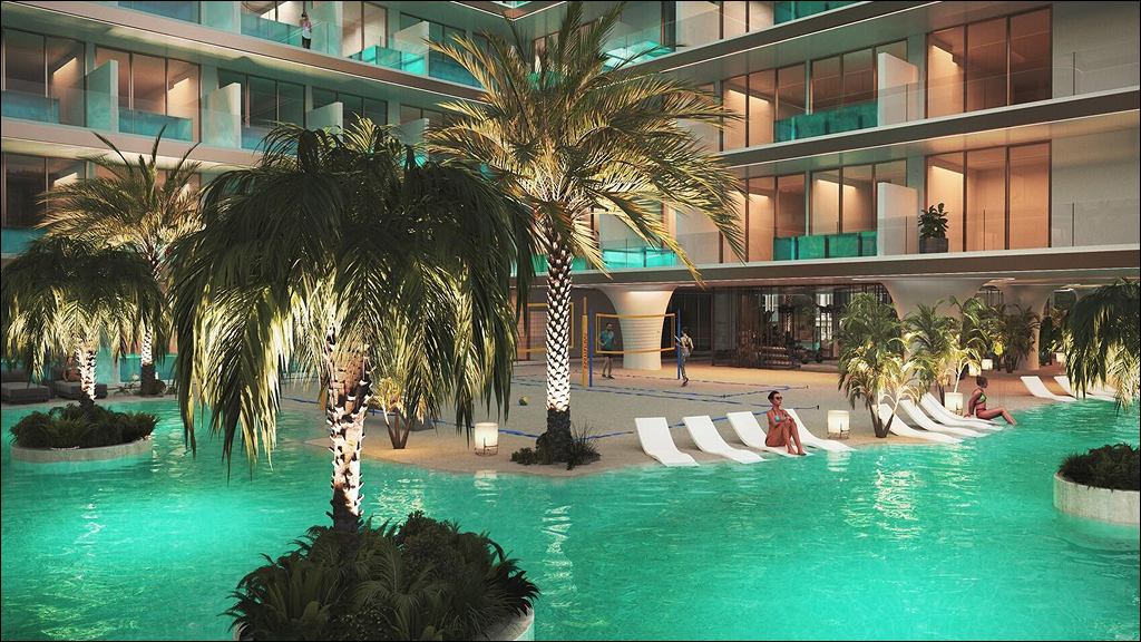 Peace Lagoons features thoughtfully designed studio, 1-, and 2-bedroom apartments, each equipped with a private pool for ultimate relaxation. The development is centered around a picturesque lagoon, offering residents a serene oasis. Amenities include a kids’ play area, volleyball court, gymnasium, beach pool, yoga area, and a 30,000 sq ft shopping mall. The enchanting lobby sets the tone for elegance and sophistication throughout the complex.