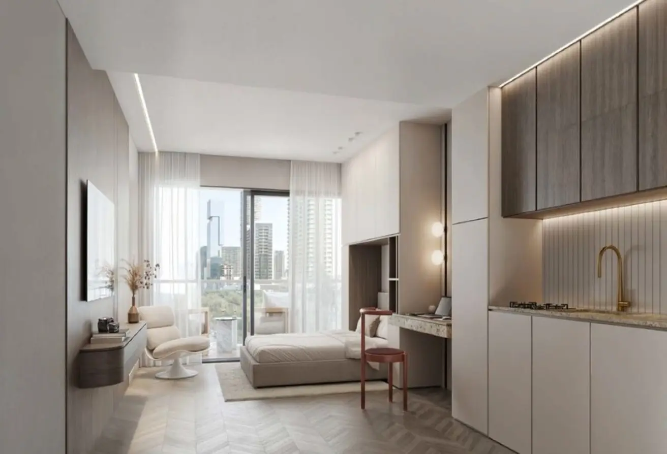 The interiors are a testament to modern design, featuring airy living rooms with custom-designed built-in cabinets, utility rooms, and fully equipped kitchens. The expansive floor-to-ceiling windows not only enhance the aesthetic appeal but also provide residents with stunning views of the surrounding cityscape. The thoughtful layout of each unit ensures a comfortable and luxurious living experience, making this an ideal choice for individuals and families seeking contemporary urban living.