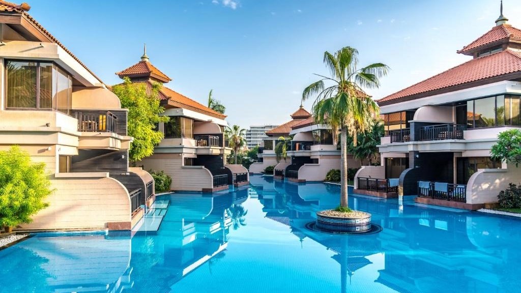 The development comprises two main sections: Royal Amwaj Residences North and South. Each section features a collection of elegantly designed apartments and penthouses, ranging from studios to expansive four-bedroom units. The architecture and interiors draw inspiration from Balinese aesthetics, creating a serene and tropical ambiance throughout the community.